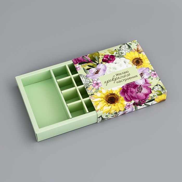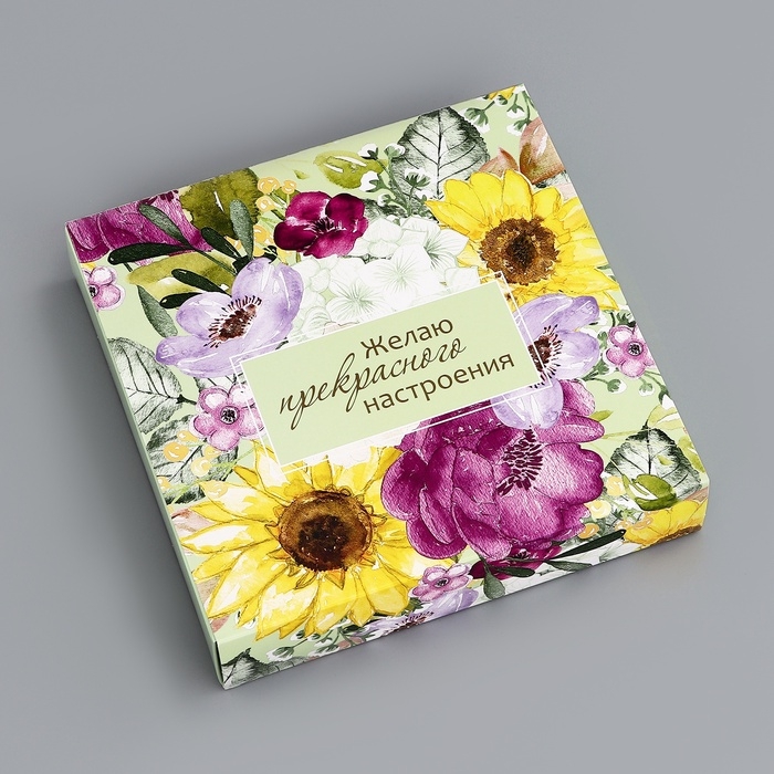 Коробка для 8 конфет + шоколад, с окном "Прекрасного настроения", 17,7 х 17,8 х 3,8 см. Кондитерская упаковка