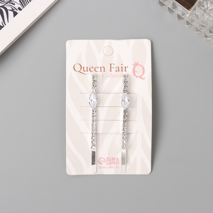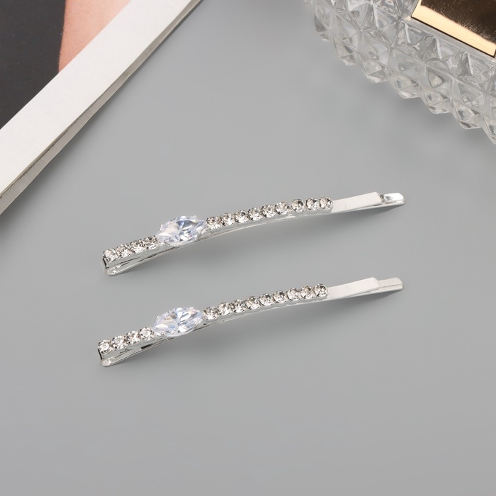 Невидимка для волос «Беат» (набор 2 шт) лепесток, 6 см, серебро