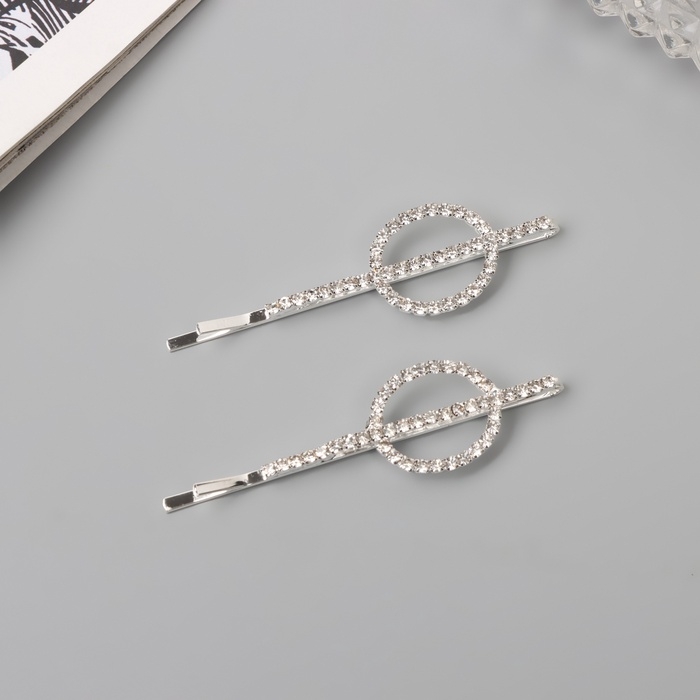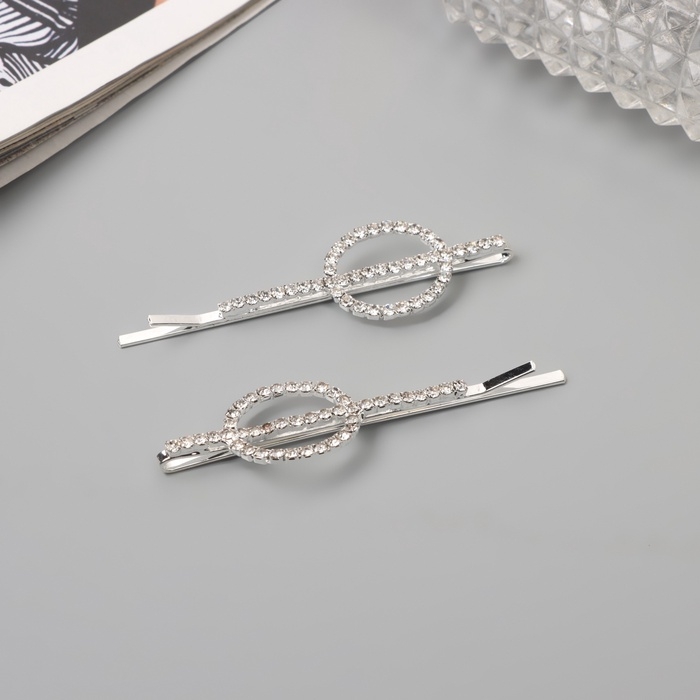 Невидимка для волос «Хайди» (набор 2 шт) сверкание, 6 см, серебро