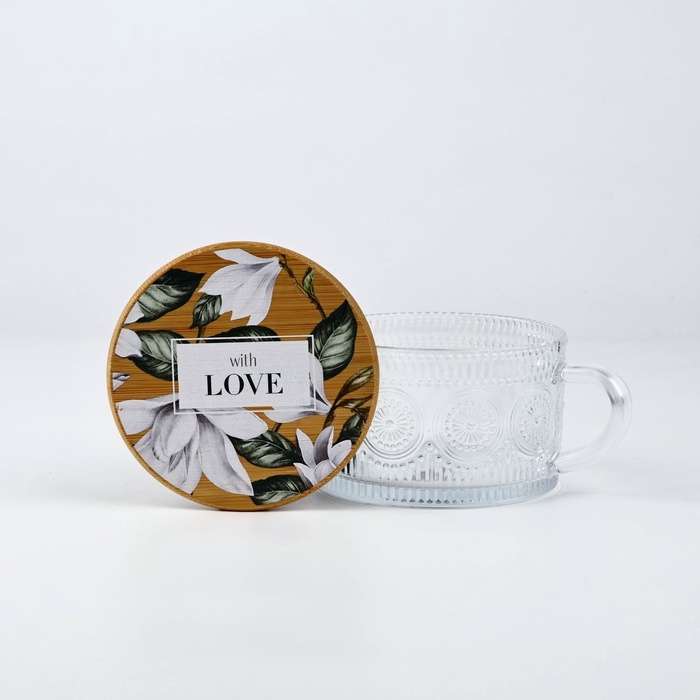 Кружка с крышкой стеклянная Дорого внимание «With love», 450 мл