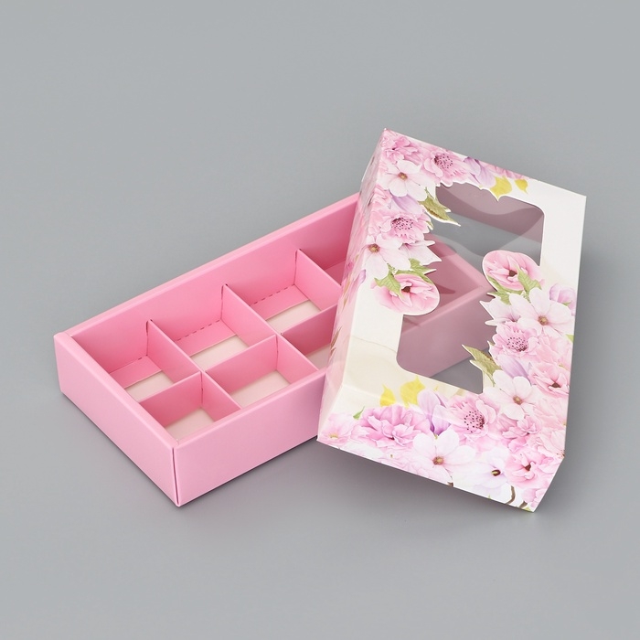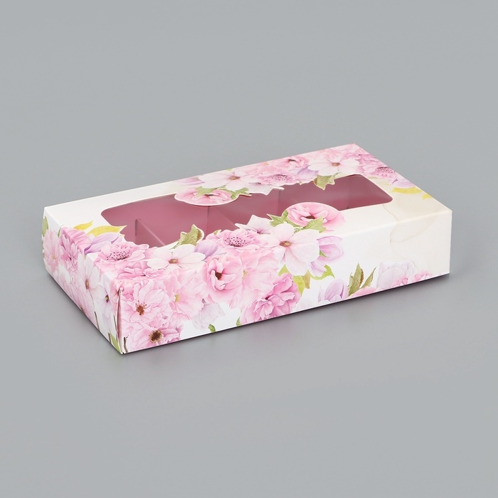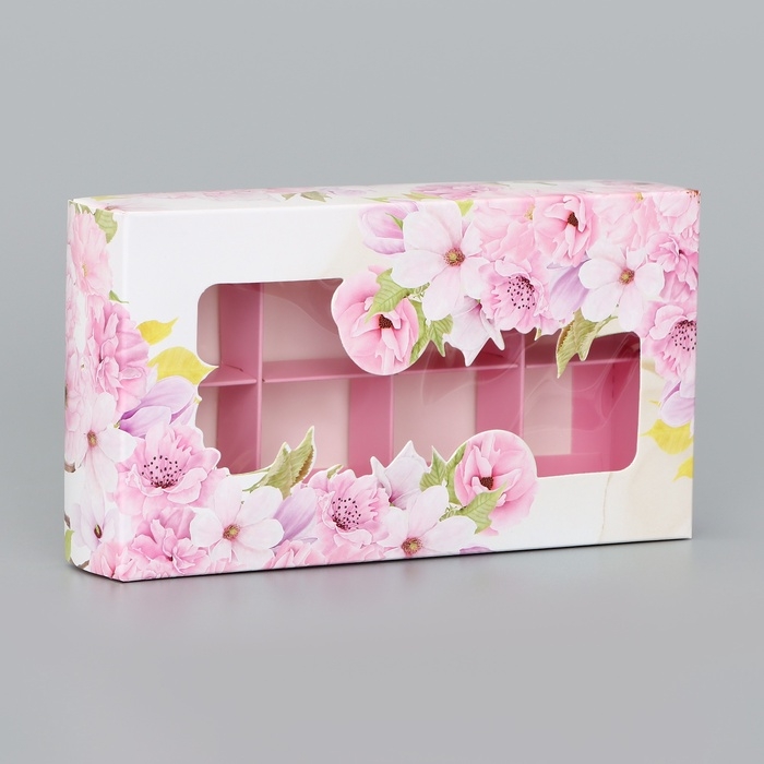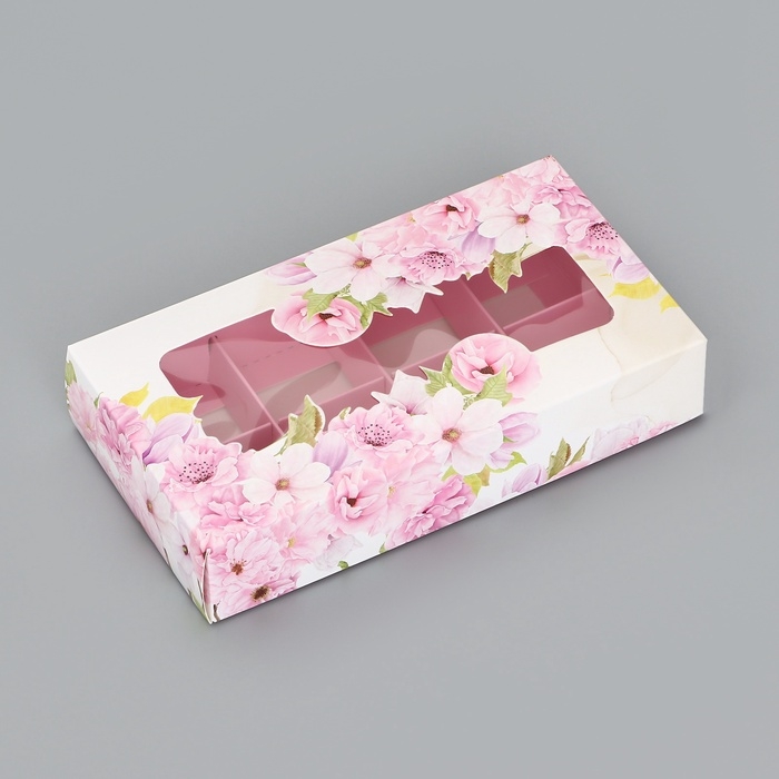 Коробка складная для 8 конфет "Цветочки", 9,8 х 17,7 х 3,5 см. Кондитерская упаковка