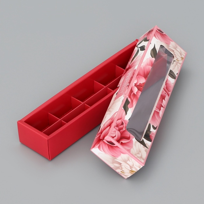 Коробка для 5 конфет с обечайкой, с окном "Презент", 21 х 5 х 3,3 см. Кондитерская упаковка