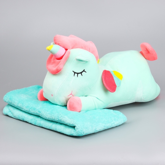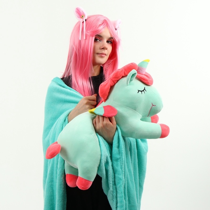 Шкурка мягкой игрушки "Единорог" с пледом, 50 см, цвет голубой