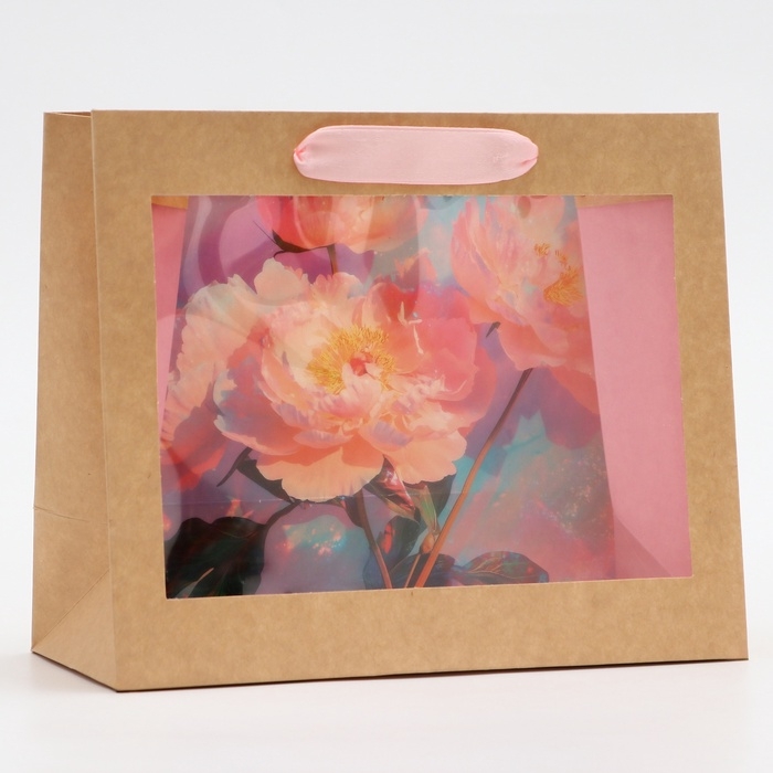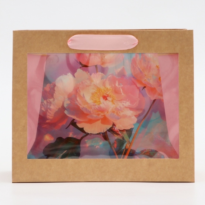 Пакет с PVC окном, "Пионы", 24 х 11 х 20 см