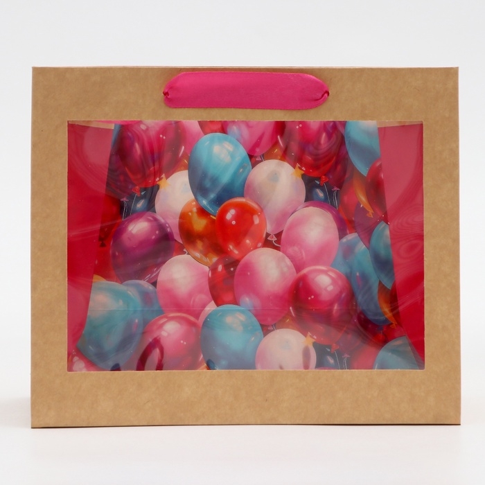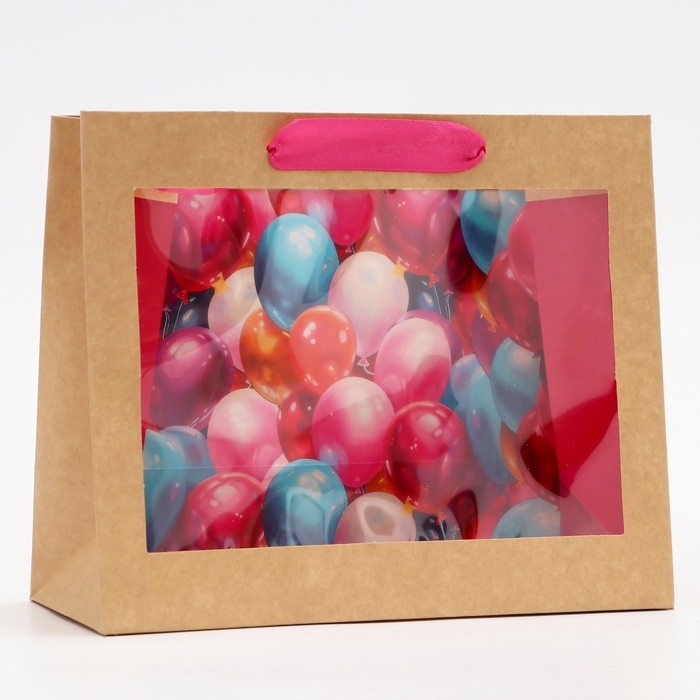 Пакет с PVC окном, "Праздничные шары", 24 х 11 х 20 см