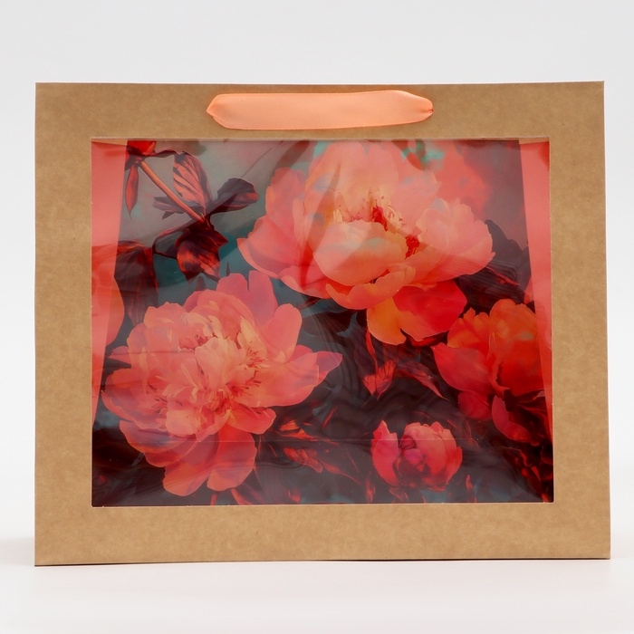 Пакет с PVC окном, "Пионы", 31 х 11 х 26 см