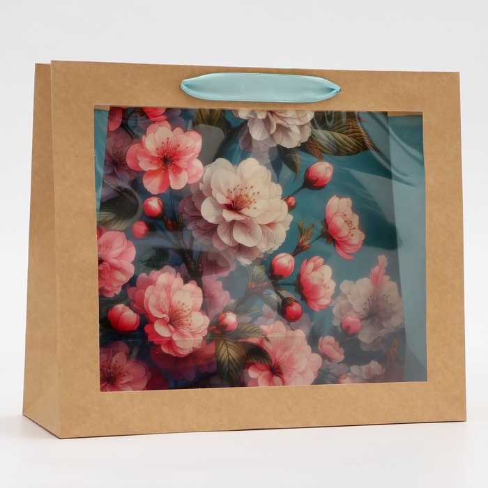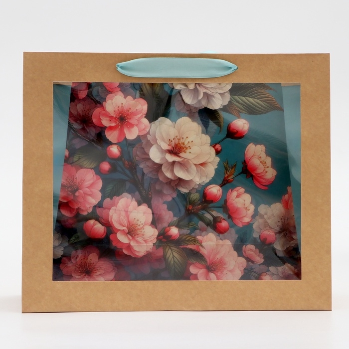 Пакет с PVC окном , "Цветы", 31 х 11 х 26 см