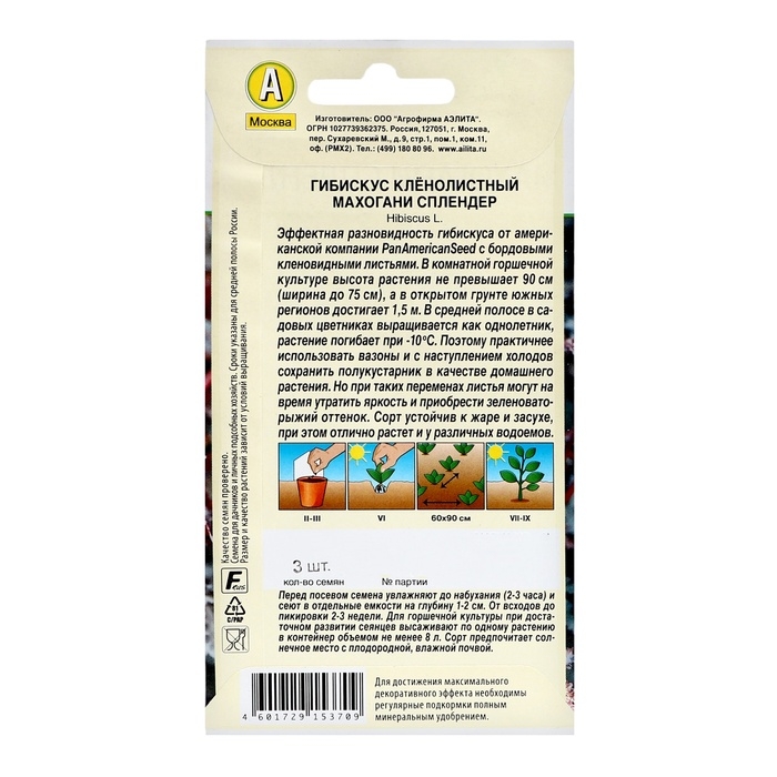 Семена цветов Гибискус "Махогани сплендер", ц/п, 3 шт