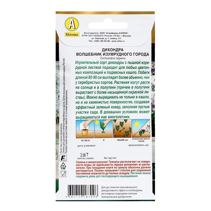 Семена цветов Дихондра "Волшебник Изумрудного города", ц/п, 3 шт