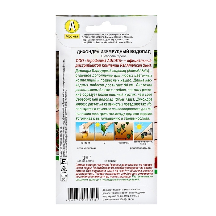 Семена цветов Дихондра "Изумрудный водопад", ц/п, 3 шт