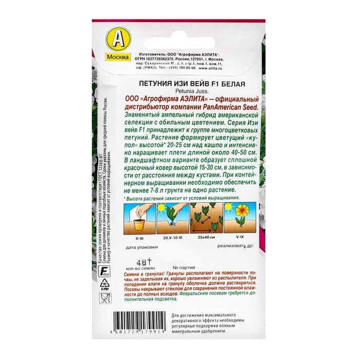 Семена цветов Петуния "Изи вейв" белая F1, ц/п, 4 шт