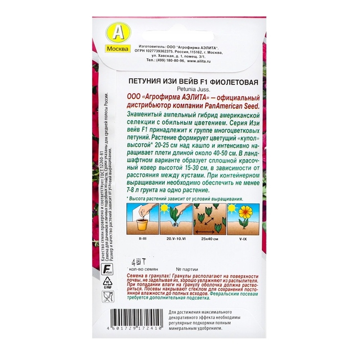 Семена цветов Петуния "Изи вейв" фиолетовая F1, ц/п, 4 шт