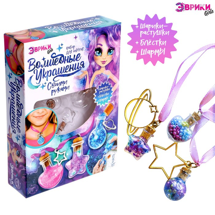С набором «Создай своё украшение» у ребёнка получится самостоятельно изготовить подвески с секретным содержимым. Для этого нужно внимательно познакомиться с инструкцией и подключить фантазию.