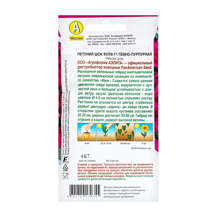 Семена цветов Петуния "Шок вейв" F1 темно-пурпурная, ц/п, 4 шт