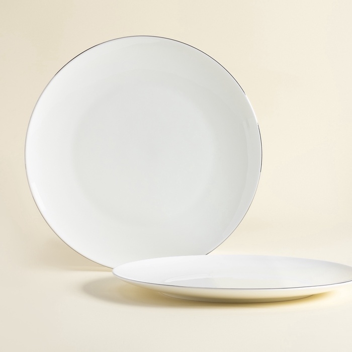 С гладкой поверхностью и утонченной серебряной отводкой эти тарелки выглядят невероятно стильно, прекрасно сочетаясь с различными сервировками.