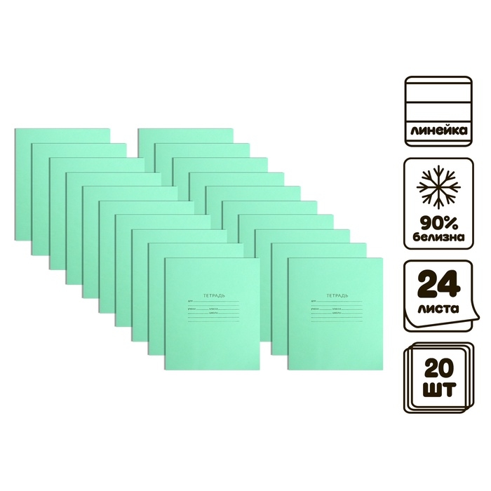 Комплект тетрадей из 20 штук, 24 листа в линию КПК "Зелёная обложка", 58-63 г/м2, блок офсет, белизна 90%
