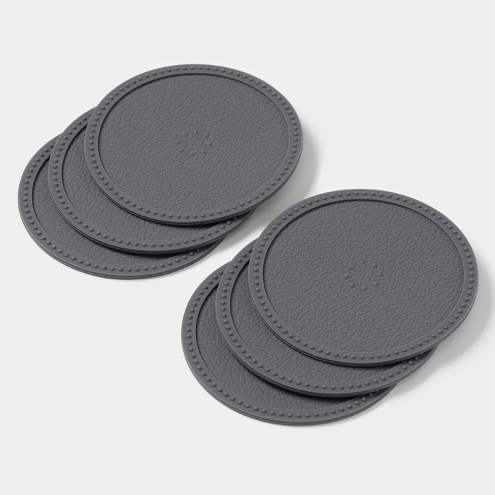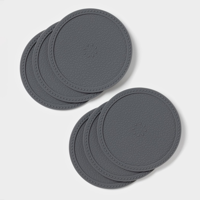 Набор подставок под горячее, под кружку, силикон, 6 шт, d=8 см, серый