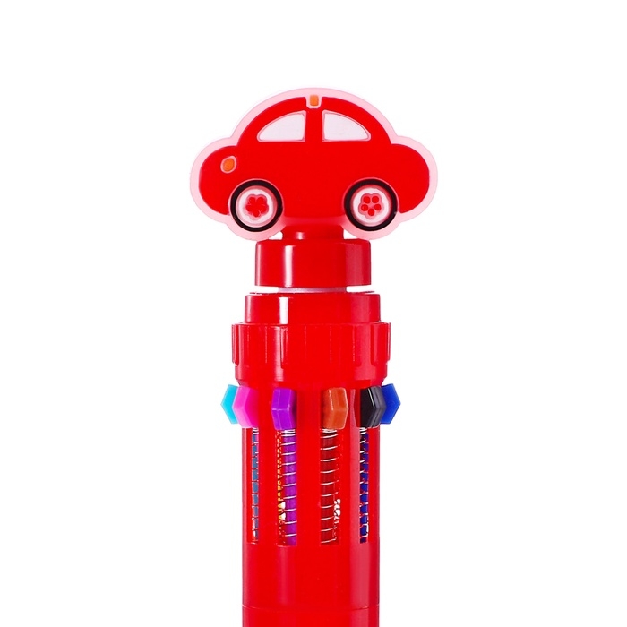 Многоцветная шариковая ручка Calligrata "Машинка-спиннер", автоматическая, 10-ти цветная, узел 0.7 мм, красная