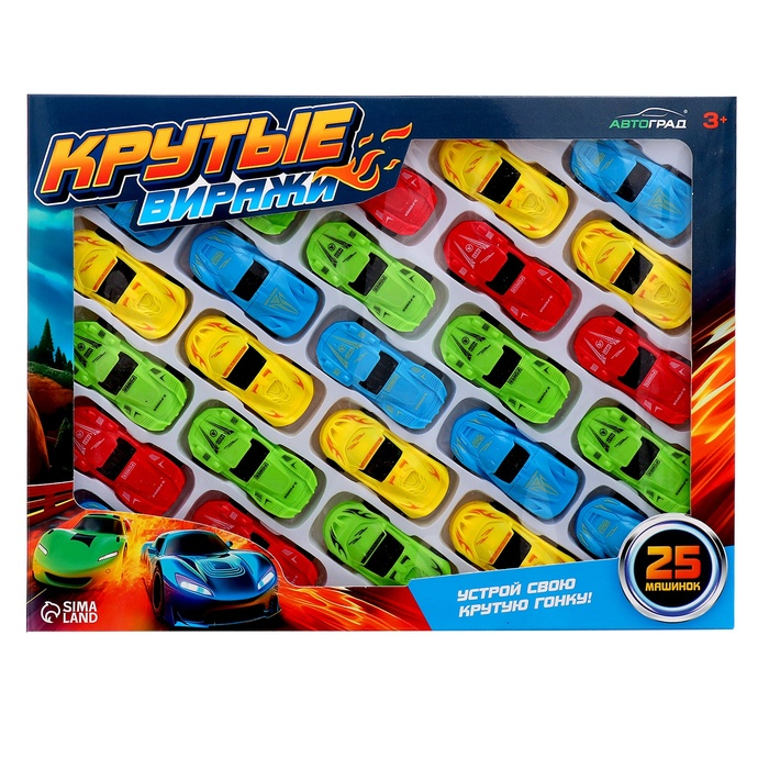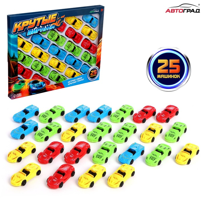 - Количество машинок в наборе — 25 штук.