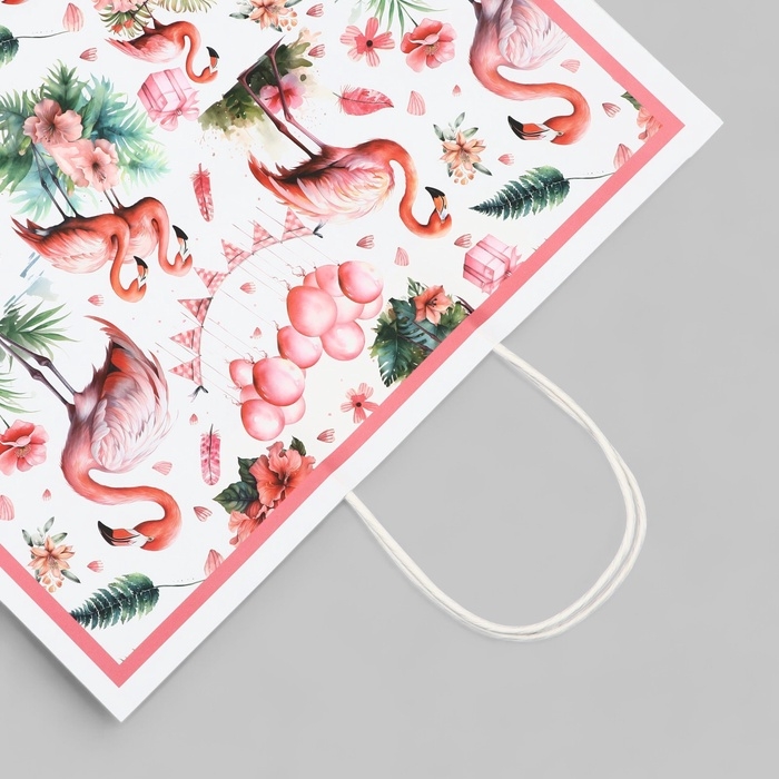 Пакет подарочный "Розовый фламинго" 31,5 х 25 х 11,5 см, 120 г/м²