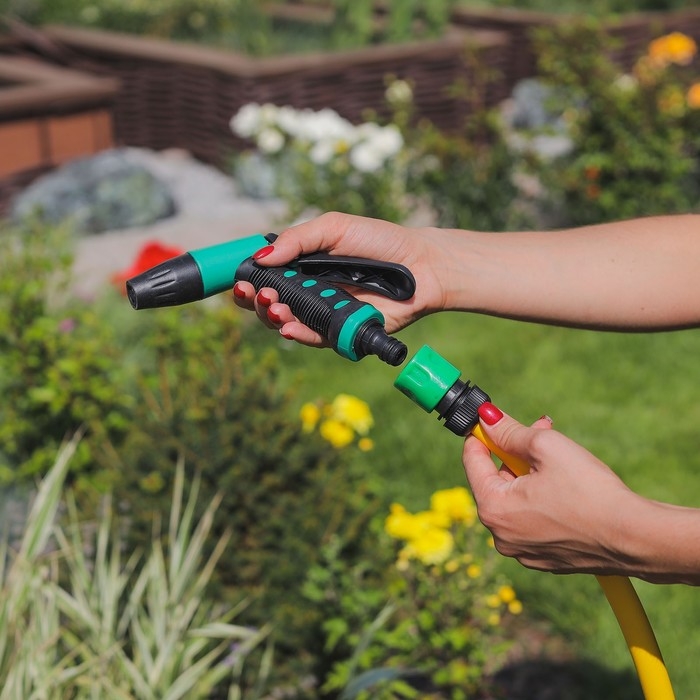 Коннектор предназначен для соединения шланга с пистолетами-разбрызгивателями и распылительными насадками. С ним вы сможете с легкостью менять насадки по необходимости, кроме того он оснащен системой аквастоп. Теперь при отсоединении насадки подача воды сразу же прекратится.