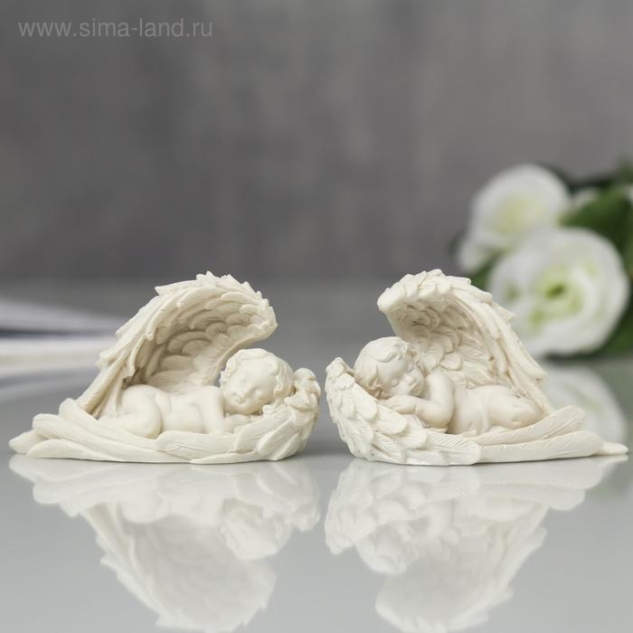 Сувенир полистоун "Белоснежный ангелочек спящий в крыльях" МИКС 4х6,5х2,5 см