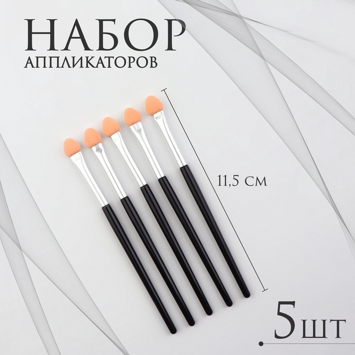 Набор аппликаторов для теней, 5 шт, 11,5 см, цвет чёрный