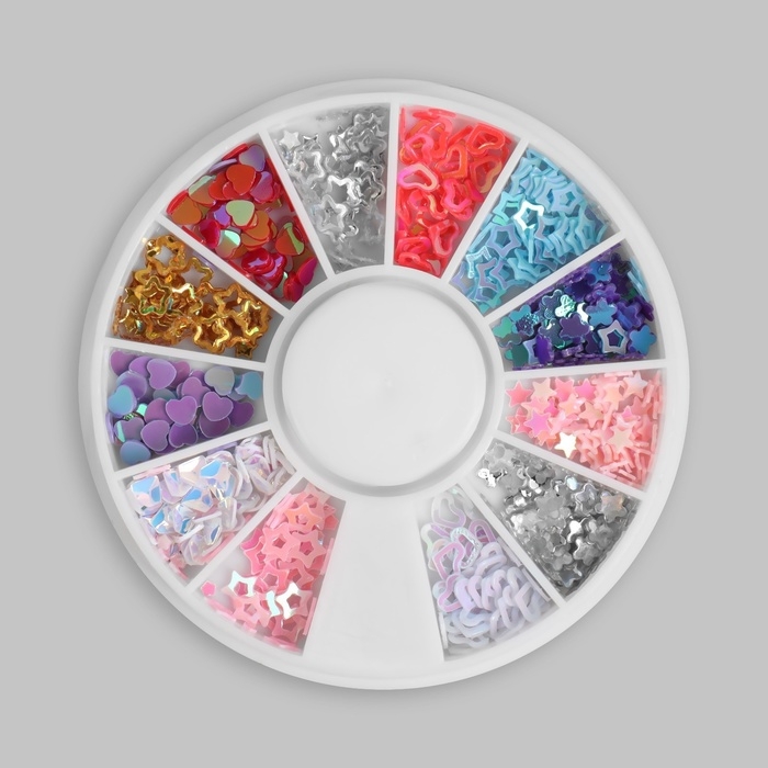 Пайетки для декора ногтей «Ассорти», 12 ячеек, разноцветные
