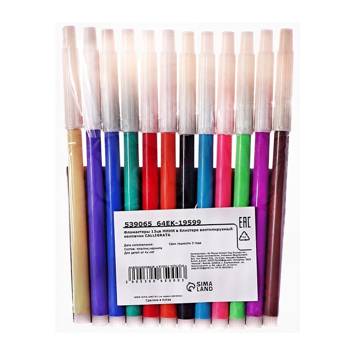 Фломастеры, 12 цветов, невентилируемый колпачок, блистер