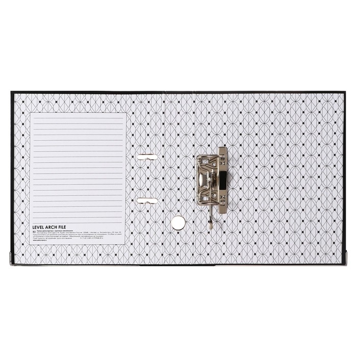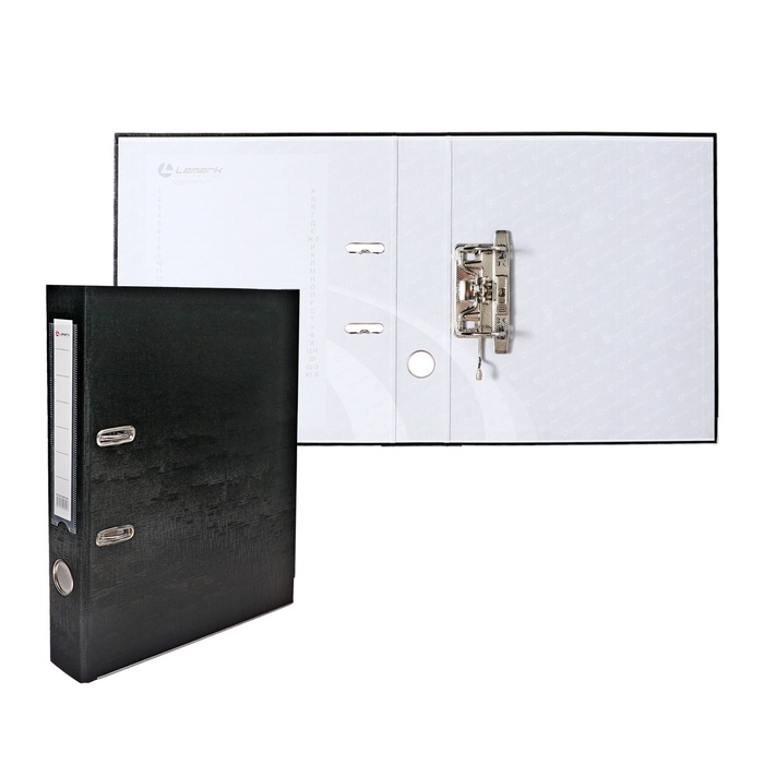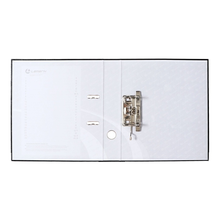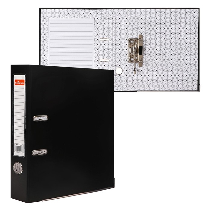 Папка-регистратор Calligrata с арочным механизмом изготовлена из плотного картона, с внешней стороны за ламинированного полипропиленовой пленкой (РР) с текстурой "лен", внутри оклеена бумагой с алфавитно-цифровым полем для классификации на левой стороне.