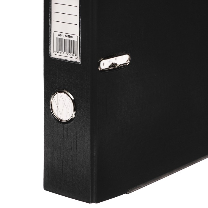 Папка-регистратор А4, 50 мм, Calligrata, ПВХ, тиснение "лен", металлическая окантовка, карман на корешок, собранная, черная микс
