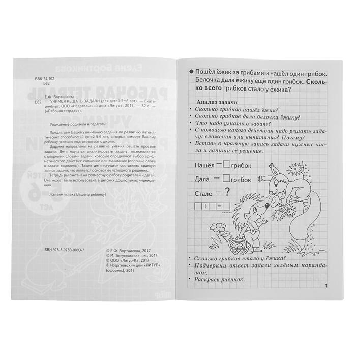 Рабочая тетрадь для детей 5-6 лет «Учимся решать задачи», Бортникова Е.