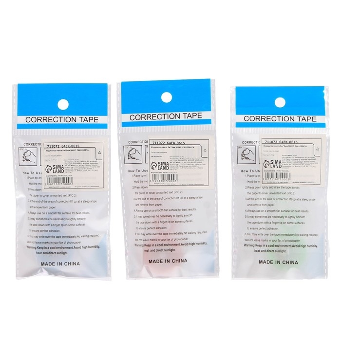 Не оставляет следов и черных полос на документе при копировании или отправке по факсу. Общая длина корректирующей ленты — 5 м, ширина — 5 мм. Поставляется блистерном пакете.