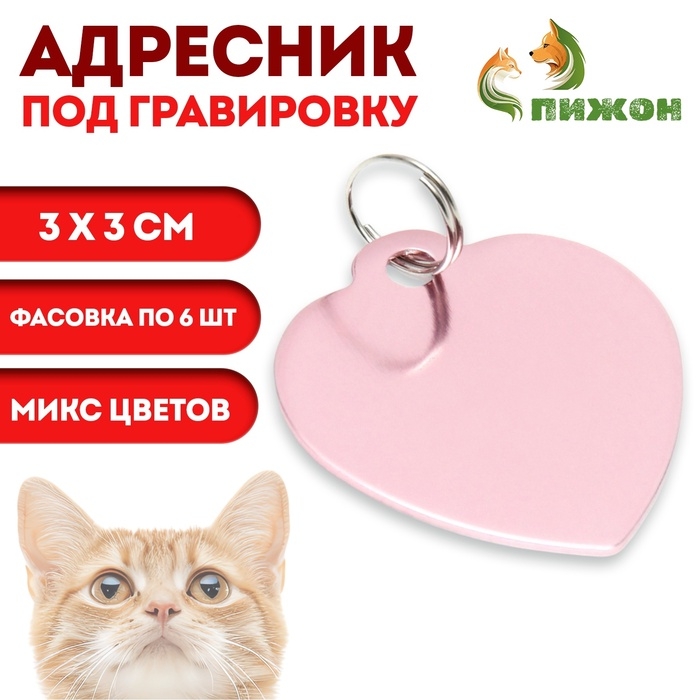 Адресник под гравировку "Сердечко" 3 х 3 см, фасовка 6 шт, микс