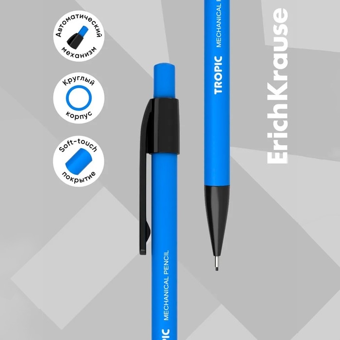 Карандаш механический ErichKrause "Tropic", НВ, грифель d=0.5 мм, покрытие Soft Touch, в коробке, микс
