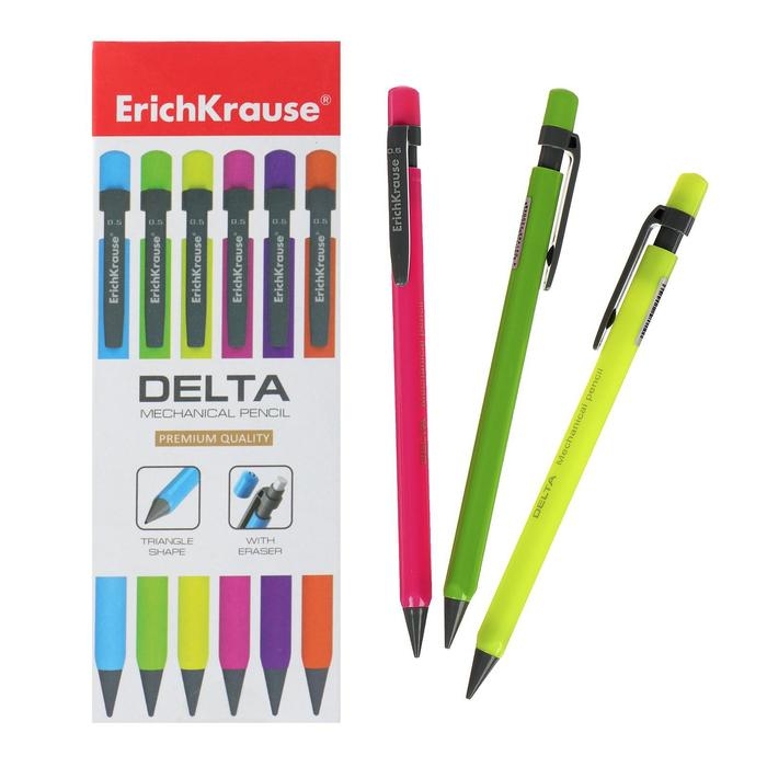 Карандаш механический ErichKrause "Delta", НВ, грифель d=0.5 мм, трёхгранный, в коробке, микс