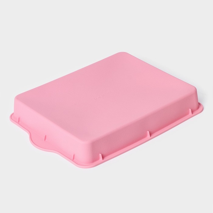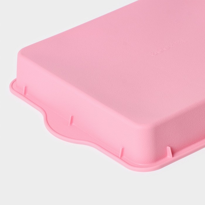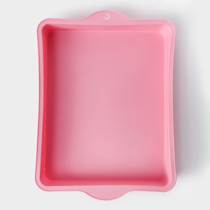 Форма для выпечки с ручками Доляна «Прямоугольник», силикон, 30×22 см, цвет розовый