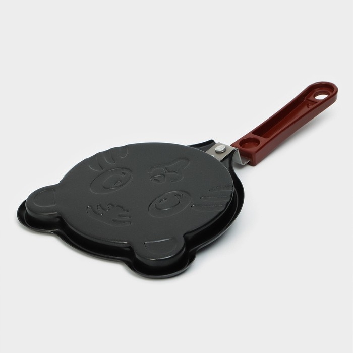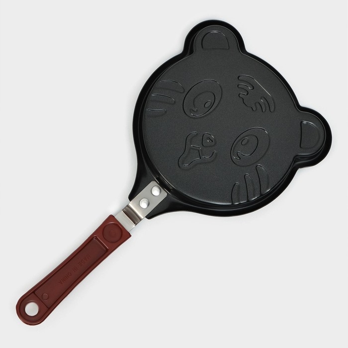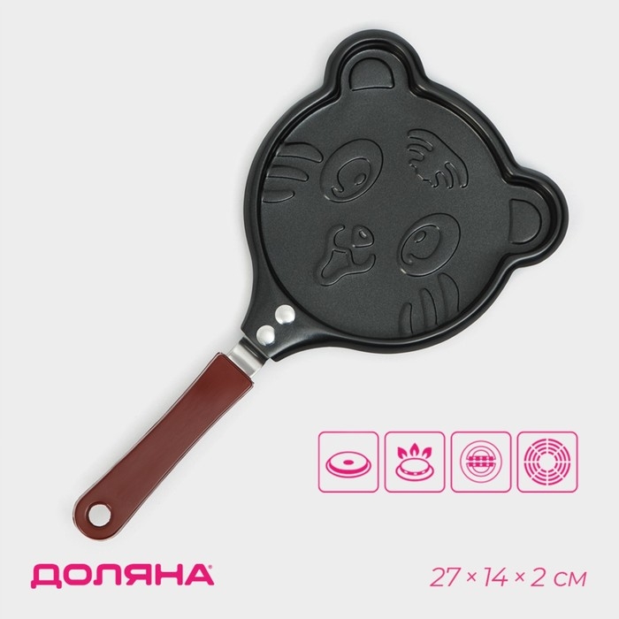 Сковорода Доляна «Котик», d=14 см, пластиковая ручка, антипригарное покрытие, углеродистая сталь, чёрная