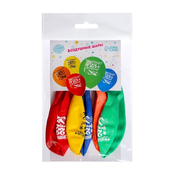Воздушный шар латексный 12" «23 февраля», 5 шт.