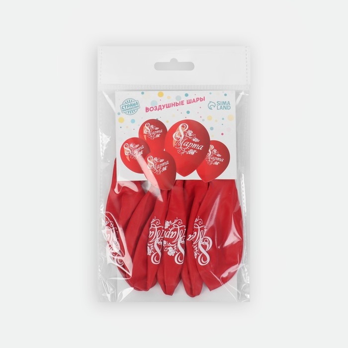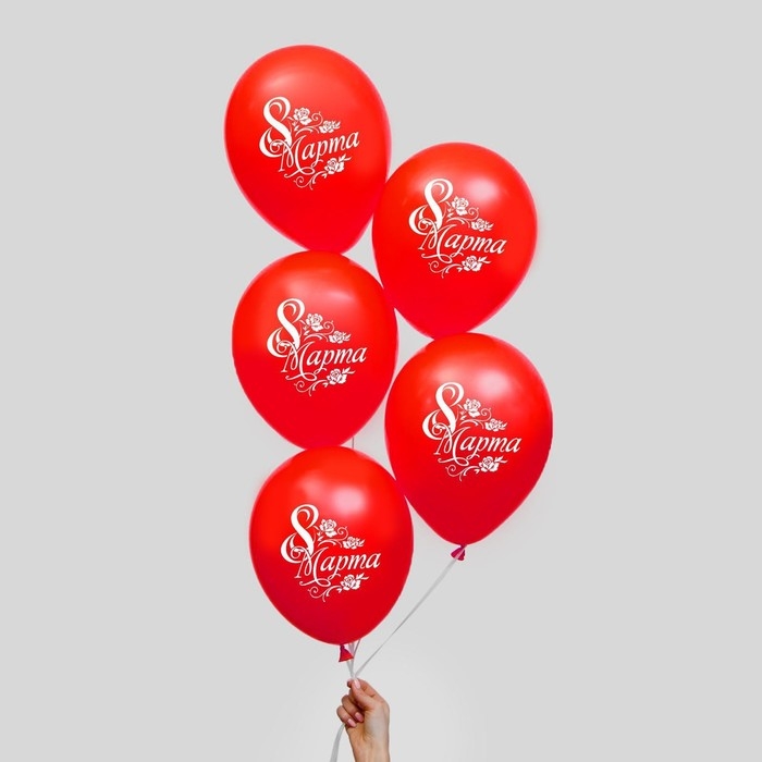 Воздушный шар латексный 12" «8 Марта», 5 шт.