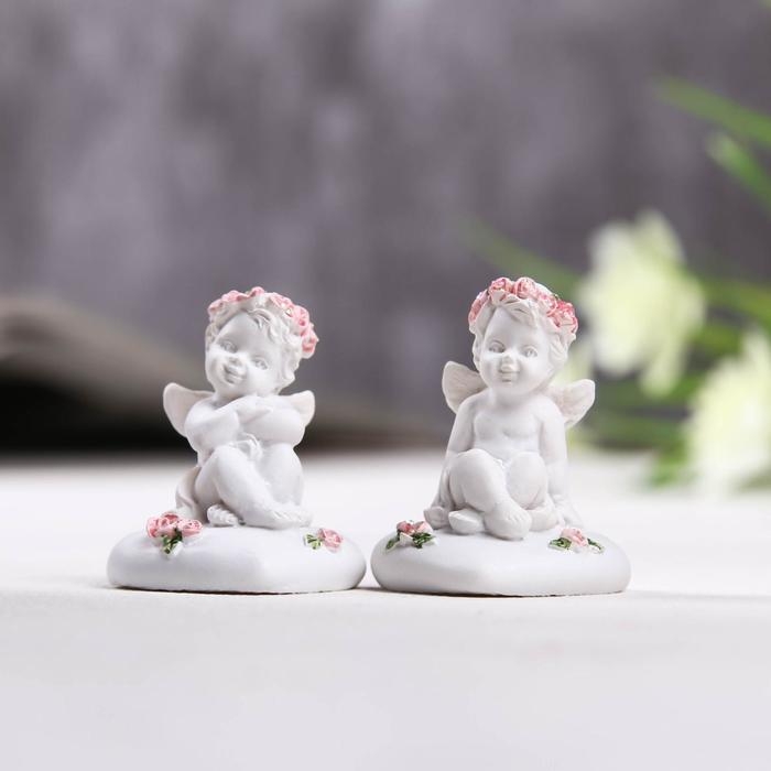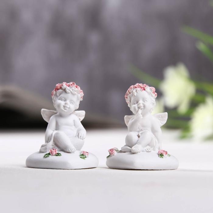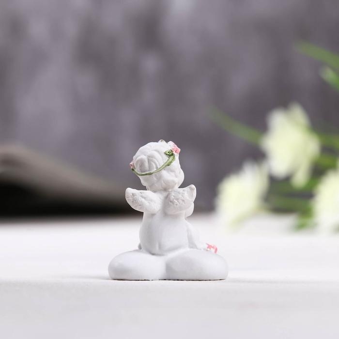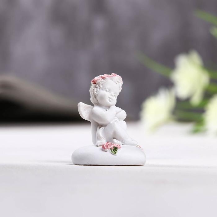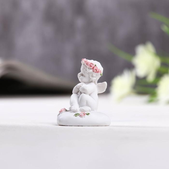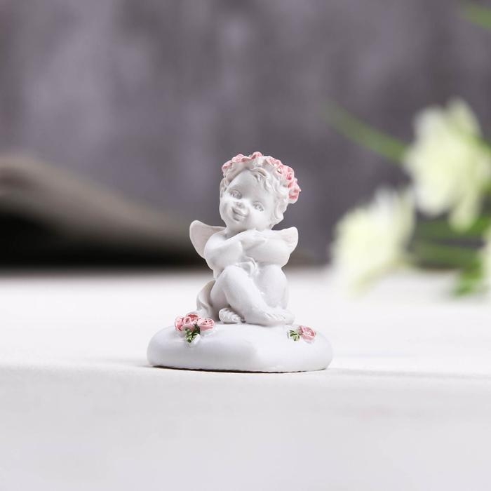 Фигурка полистоун «Ангелок сидит на сердце в венке из роз», 3.5×3×4 см, МИКС