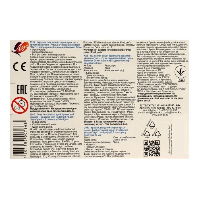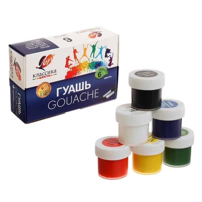 Гуашь 6 цветов х 20 мл "Классика" поможет вашему ребёнку создавать красивые яркие картинки, выдумывать невероятные сюжеты и воплощать их в реальность, развивая цветовое восприятие, зрительную память, воображение, мелкую моторику пальцев, ассоциативное, аналитическое и творческое мышление.