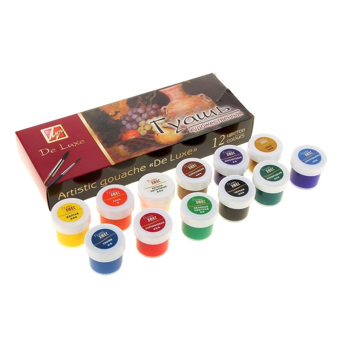 Гуашь художественная 12 цветов х 20 мл, De Luxe