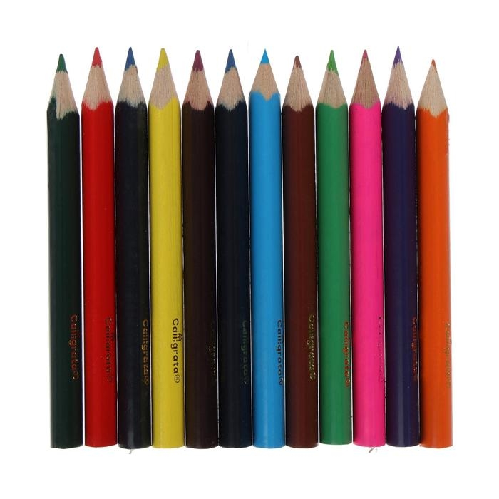 Карандаши цветные 12 цветов МИНИ, корпус деревянный, треугольный