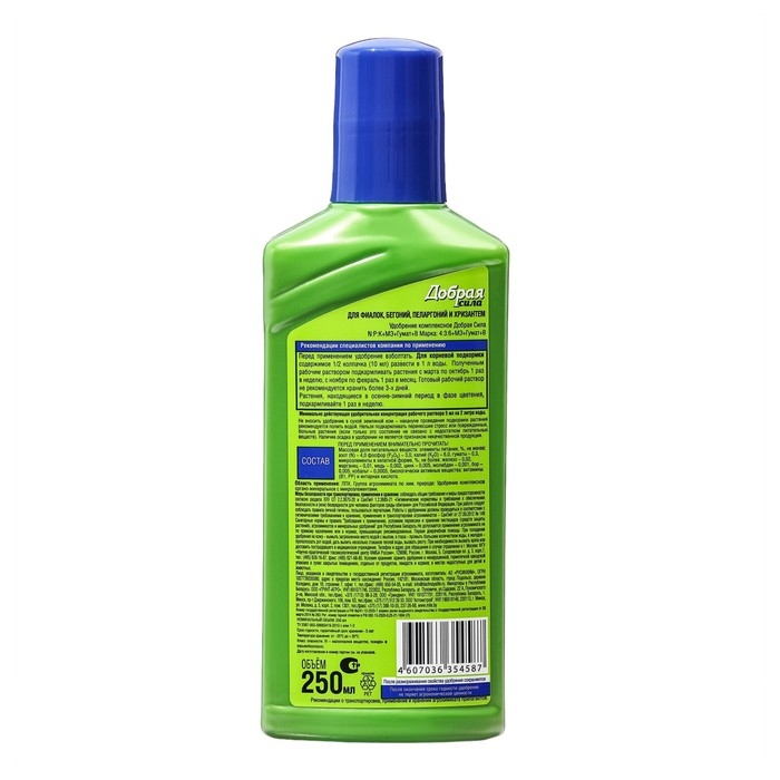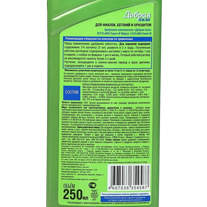 Удобрение "Добрая Сила", для фиалок, флакон, 250 мл
