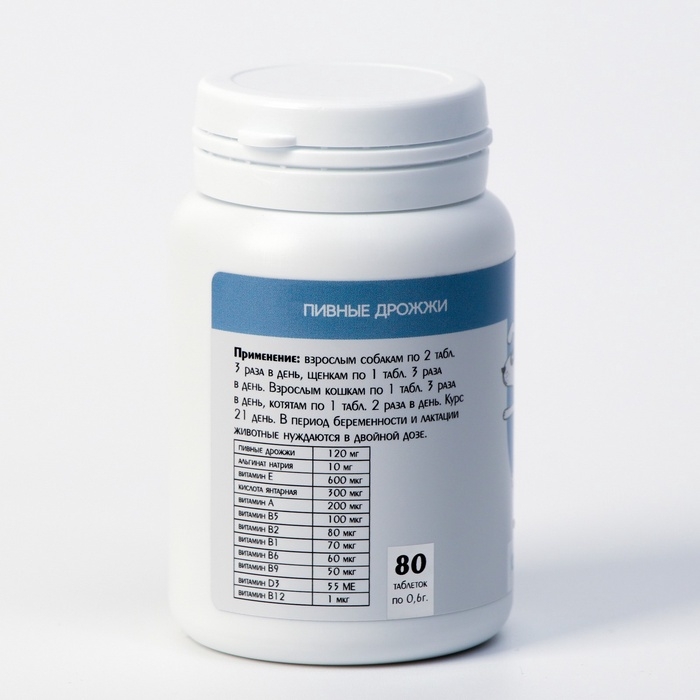 Пивные дрожжи очищенные для кошек и собак, 80 таб