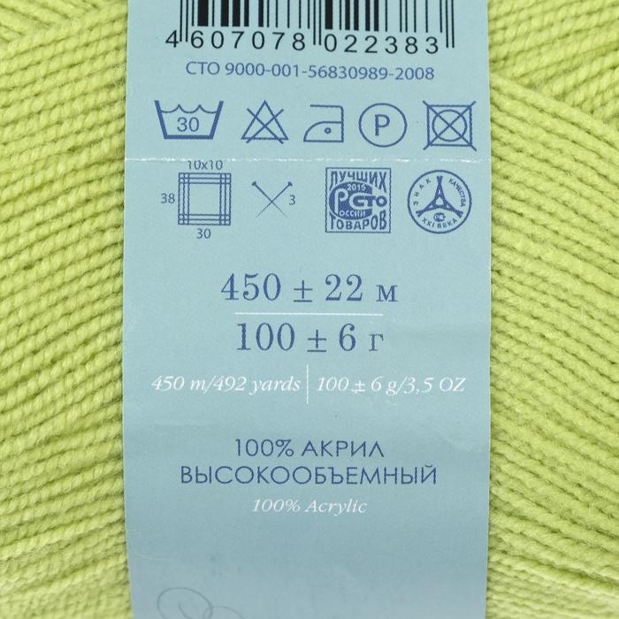 Пряжа для вязания спицами, крючком «Пехорский текстиль. Бисерная», 100% акрил, 450 м/100 г, (193 св. салат)