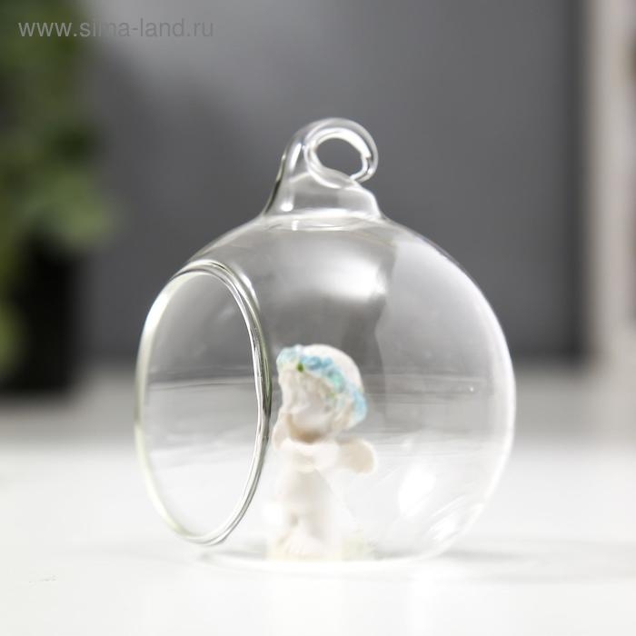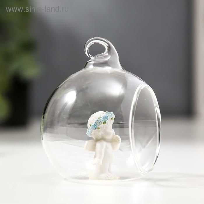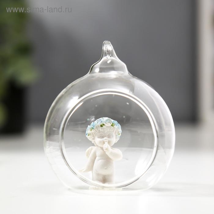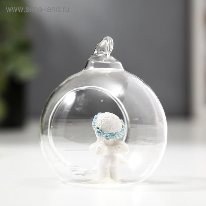 Сувенир полистоун "Ангелок в шаре" голубой веночек, 6,7х5,5х6,2 см