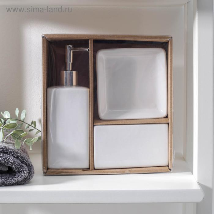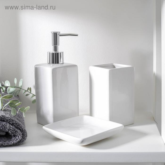 Набор аксессуаров для ванной комнаты «Лодж», 3 предмета (мыльница, дозатор для мыла 350 мл, стакан), цвет белый