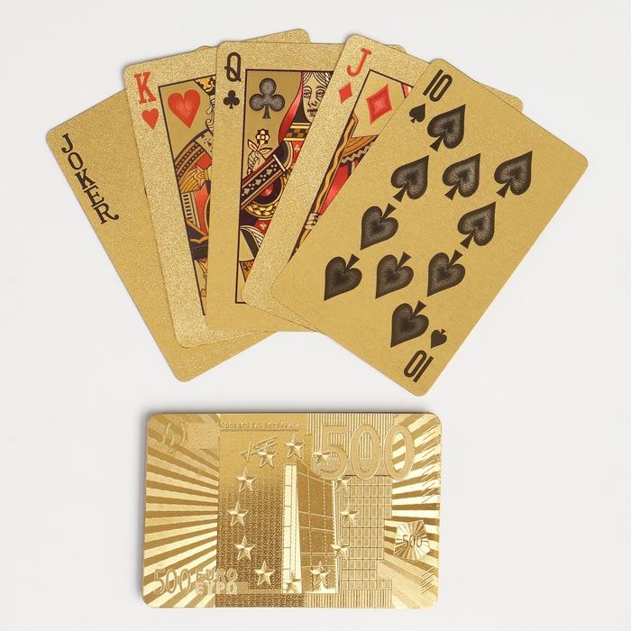 Карты игральные пластиковые "500 евро", 54 шт, 30мкм, 8.7 х 5.7 см, золотистые, в шкатулке